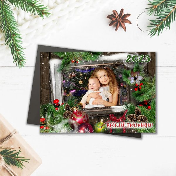 Коледен магнит със снимка - Снежна рамка