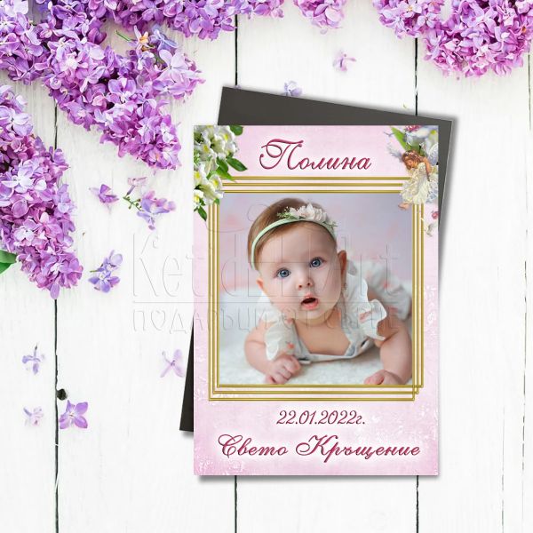 Магнитите за кръщене със снимка са изработени с внимание към детайлите, съчетавайки елегантност и красота. Със своите живописни цветове и високо качество на печат, те са идеалният подарък за гостите на кръщенето. Вие имате възможност да персонализирате магнита със снимка, име, дата и специално послание, което ще направи този спомен наистина уникален.