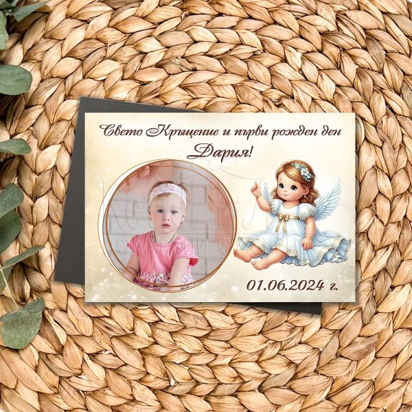 Магнит за кръщене и първи рожден ден със снимка на момиче