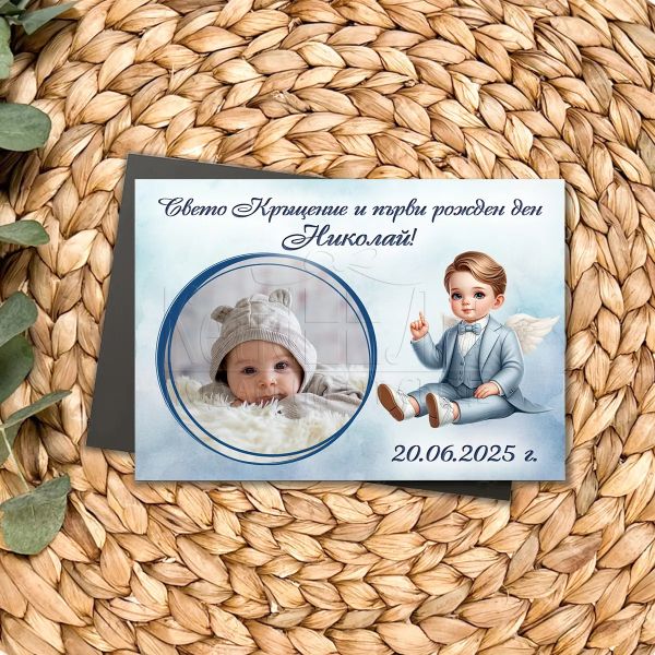 Магнит за кръщене и първи рожден ден със снимка на момче
