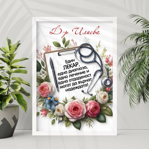 Представяме ви постер за лекар с цветя и персонализирано послание – изключителен подарък, който изразява уважение и признателност. Този артикул е създаден за хора, които ценят медицинските специалисти и искат да изразят благодарност по емоционален и стилен начин. Изработен е с висококачествен печат, който гарантира трайност и наситени цветове, запазващи се дълго във времето.