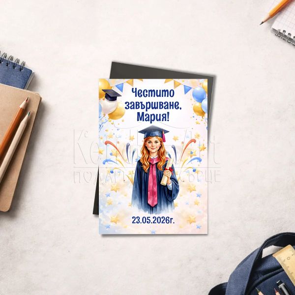 Можеш да персонализираш магнита с името на ученика. Добавя се и точна дата на завършване или друг важен момент. Закрепя се лесно към всяка метална повърхност.